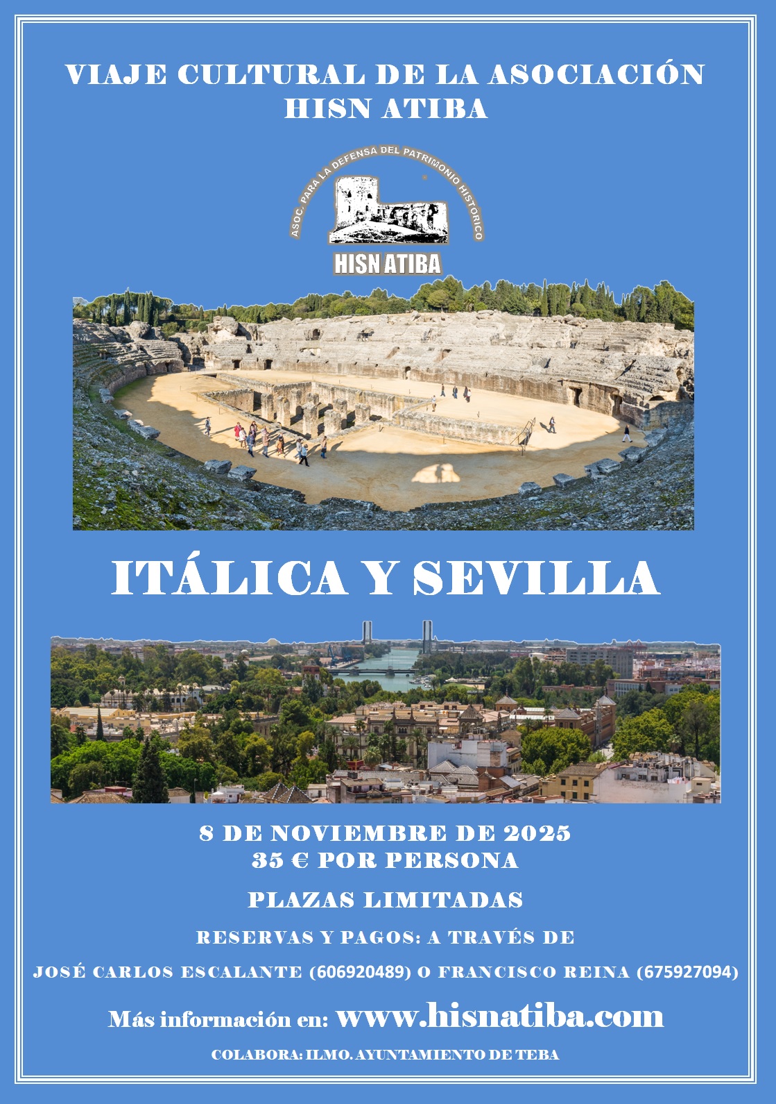La Asociación para la Defensa del Patrimonio Histórico de Teba (Hisn Atiba) comenzó a fraguarse a finales de 2002 cuando un grupo de entusiastas de la Historia y más concretamente del patrimonio histórico que atesora nuestra Villa Condal de Teba, decidimos aunar nuestras ilusiones y esfuerzos para relanzar el legado que el pasado dejó a nuestro pueblo. Constituida formalmente el 1 de marzo de 2003 y con sus estatutos legalmente inscritos desde el 3 de octubre del mismo año, Hisn Atiba cuenta con 160 socios cotizantes, lo que la hace la principal Asociación cultural de la Comarca del Guadalteba y una de las más importantes de toda la Provincia. Hisn Atiba ha organizado, desde su fundación un gran número de eventos culturales entre los que destacan las Jornadas Culturales sobre el Patrimonio Histórico de Teba, de las que se han realizado cuatro ediciones, la organización de múltiples conferencias y visitas guiadas al patrimonio histórico de Teba y otros lugares de Andalucía, la participación en eventos provinciales, la edición de un Boletín de difusión del patrimonio, exposiciones fotográficas, etc. etc. Hisn Atiba se dedica, también, a otras muchas actividades como asesorar desinteresadamente a cuantas instituciones públicas o privadas piden su parecer o su colaboración para cualquier tarea que directa o indirectamente tenga que ver con el patrimonio histórico, o llevar a cabo tareas de salvamento e intervención arqueológicas como las realizadas en el Cortijo del Tajo o en la necrópolis de La Lentejuela, en colaboración con la Universidad de Málaga. De igual forma Hisn Atiba tiene una importante participación en el funcionamiento y actividades del Museo Histórico Municipal de Teba.